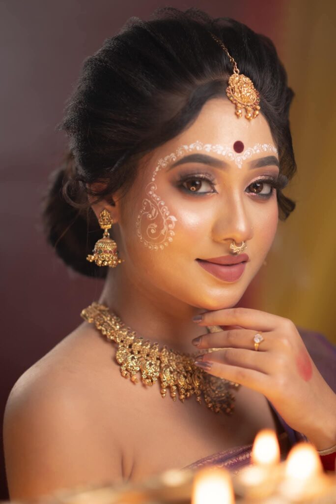 Tripti Das is a professionally trained makeup artist known for creating elegant, timeless, and soul-touching transformations. With her warm, intuitive, and detail-oriented approach, she ensures every bride feels confident, cared for, and truly beautiful — whether it’s your marriage day, reception, engagement, or any cherished moment.